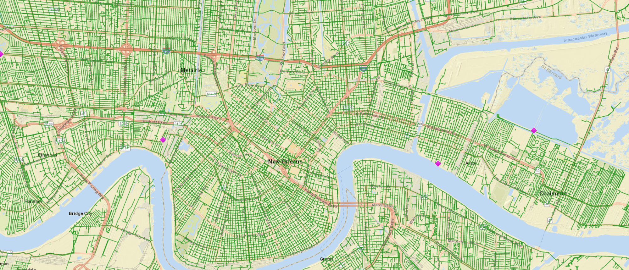 Weatherwise is an overview of all City weather stations in Orleans Parish, providing real-time localized weather reporting.